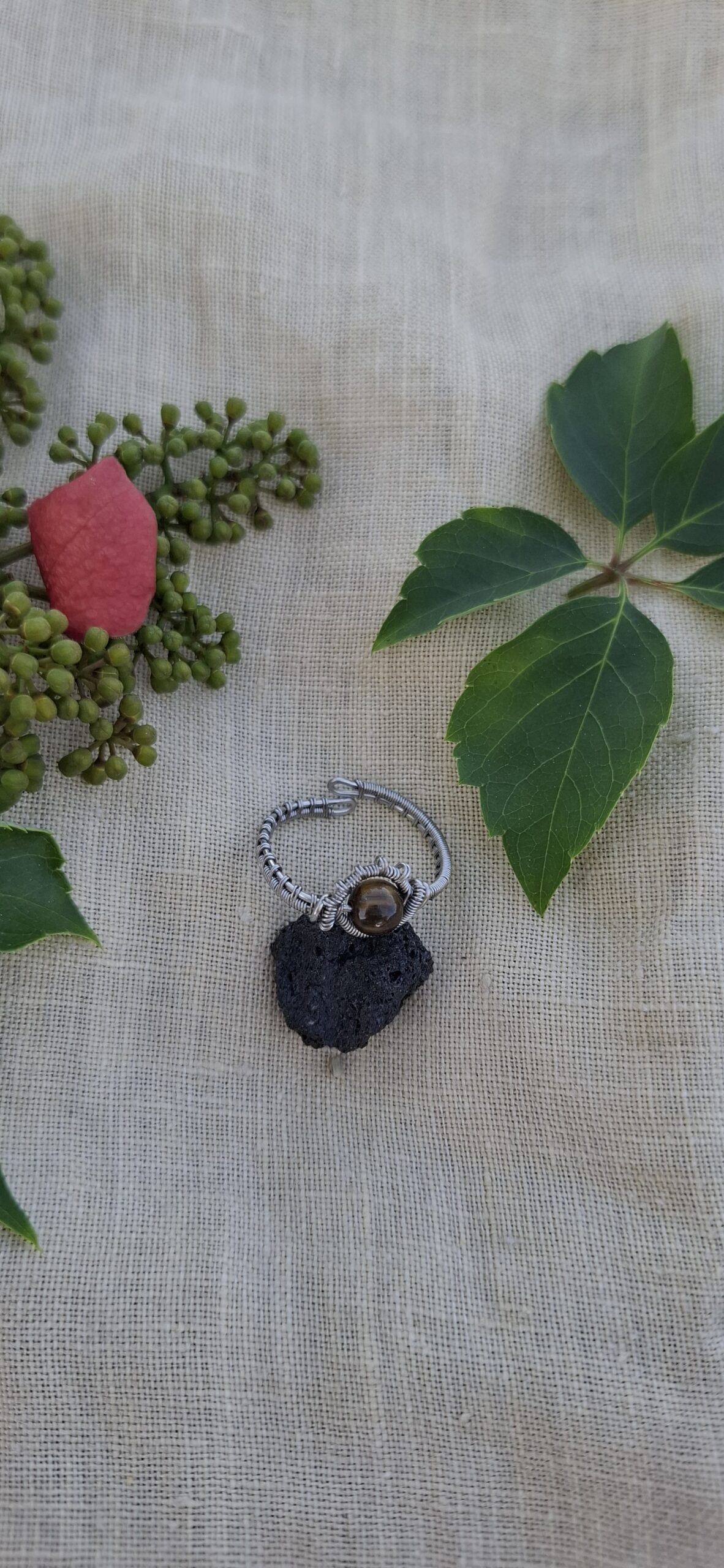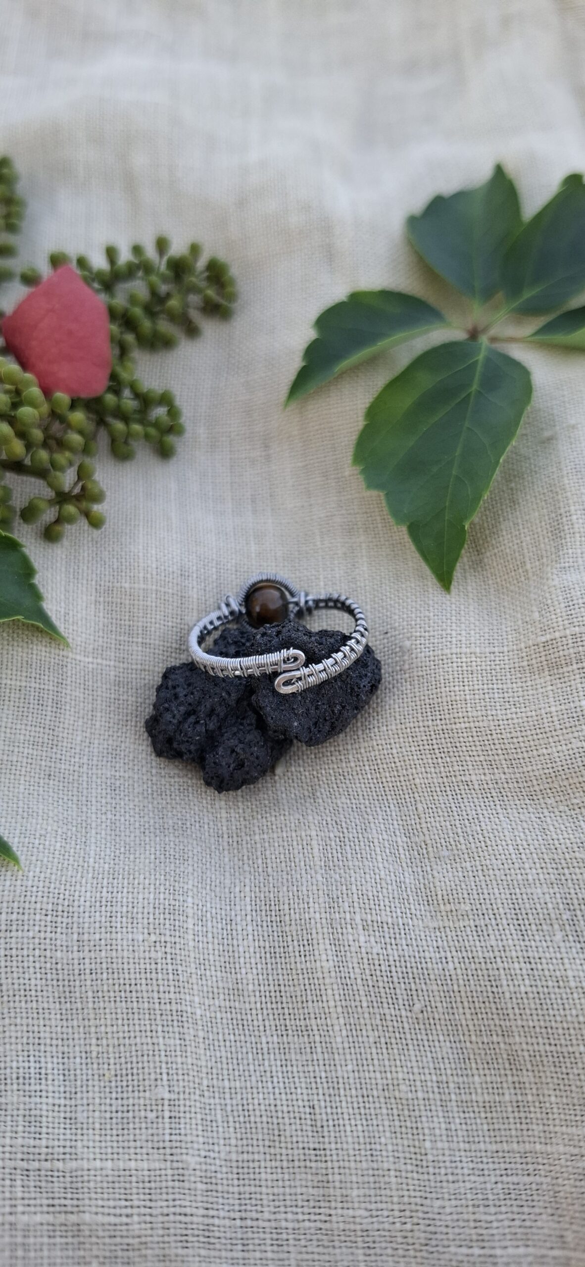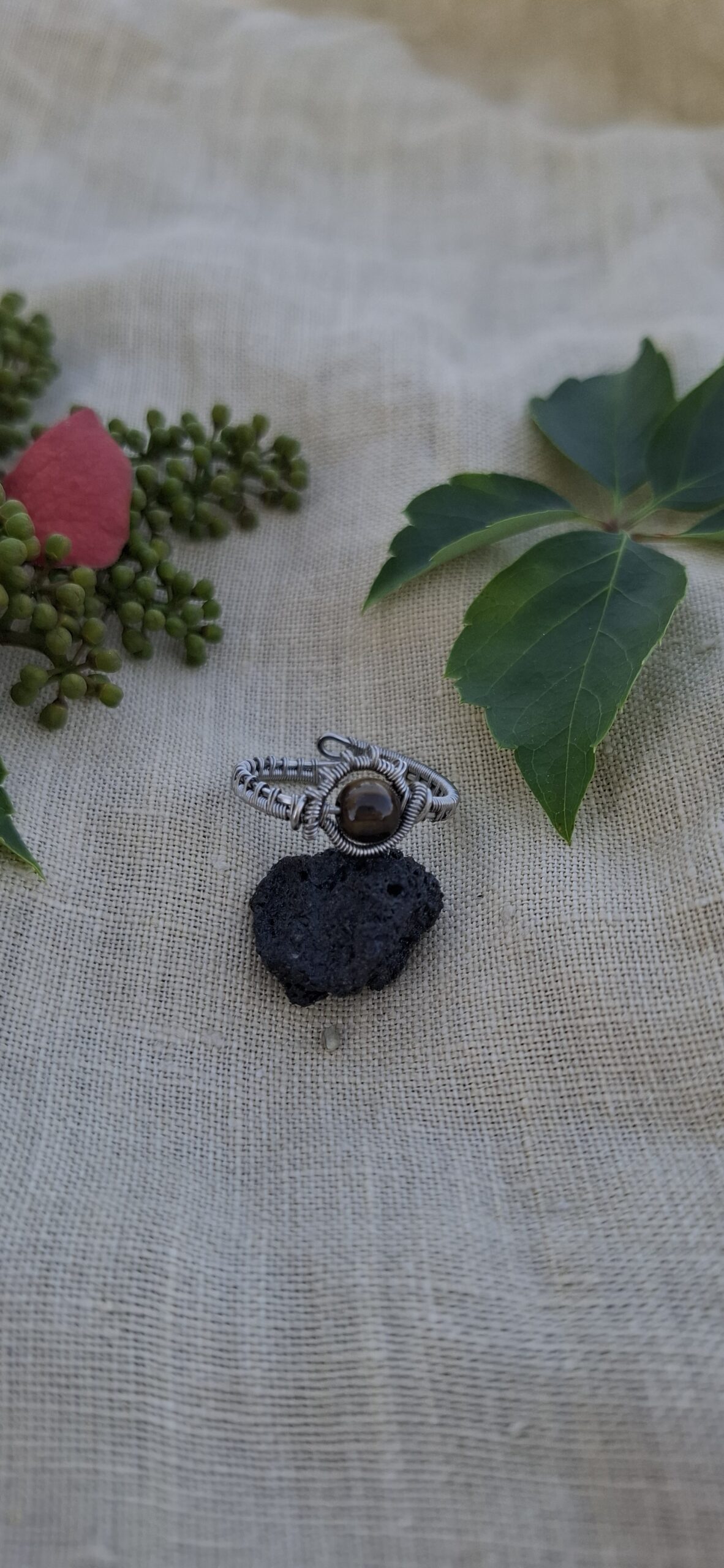 Anillo piedra Ojo de Tigre, engarzado en acero inoxidable.