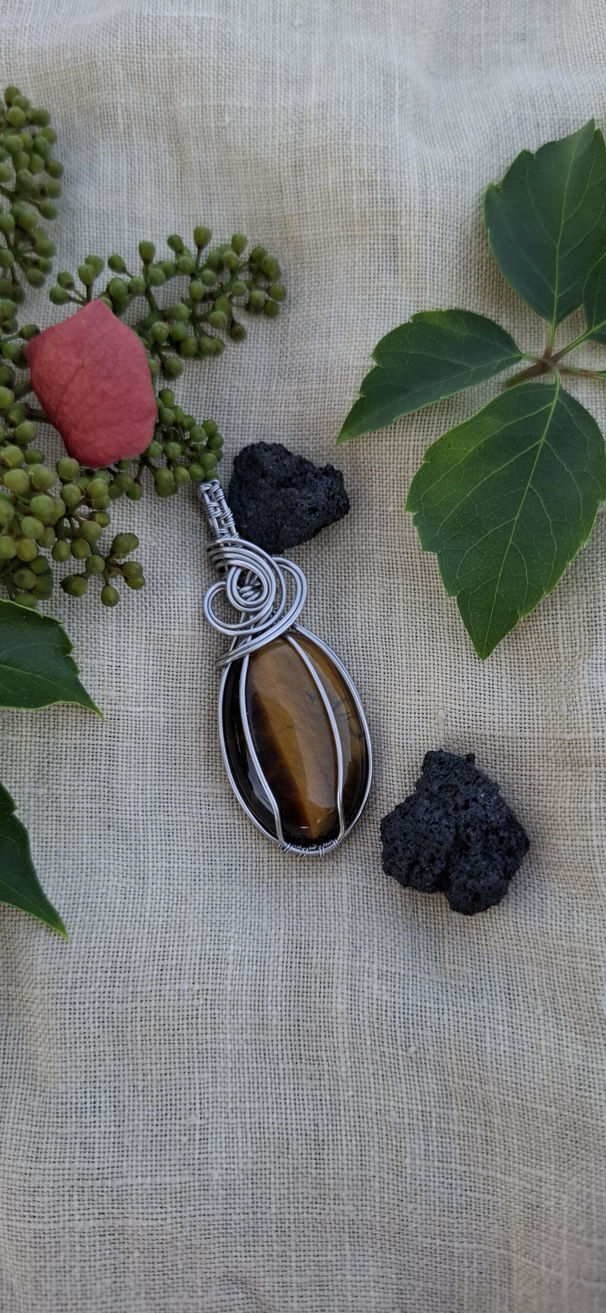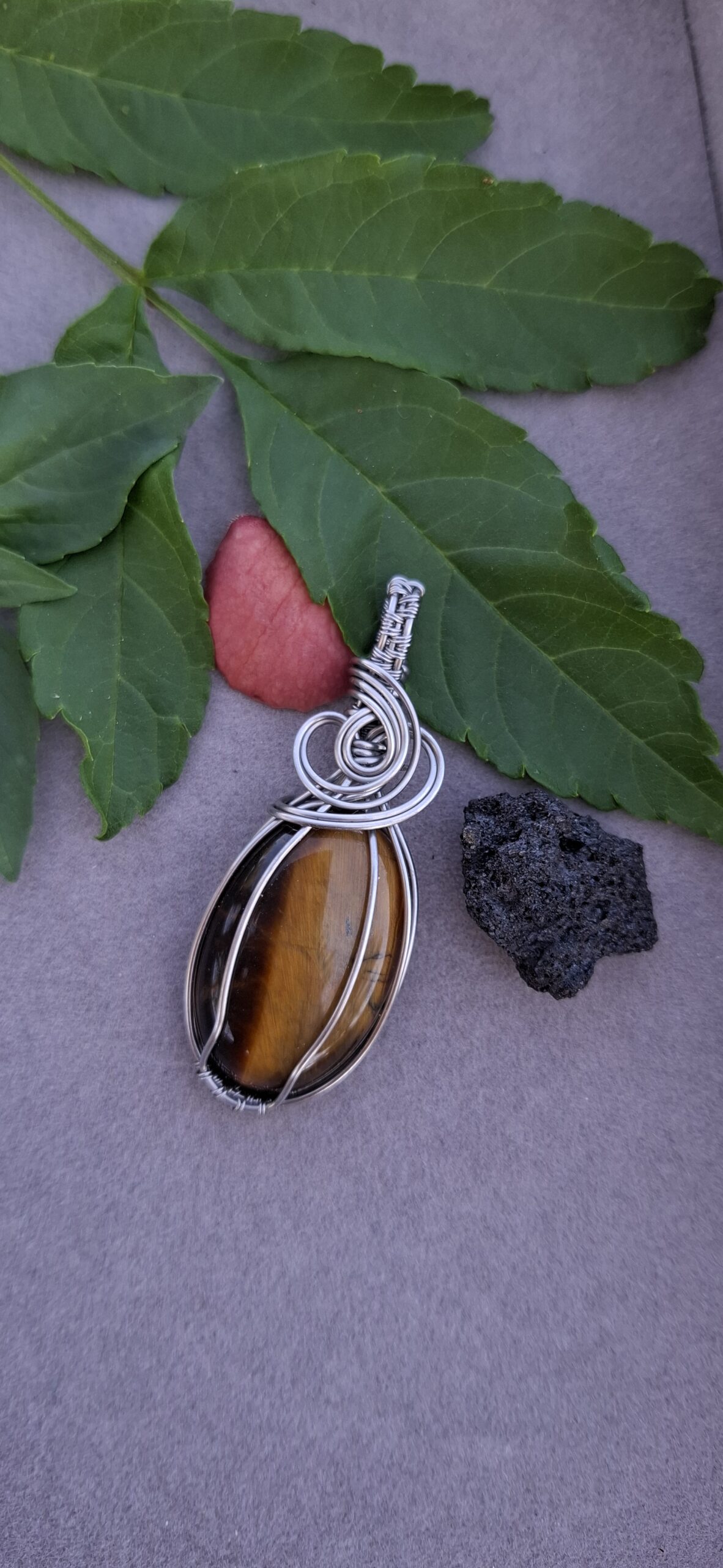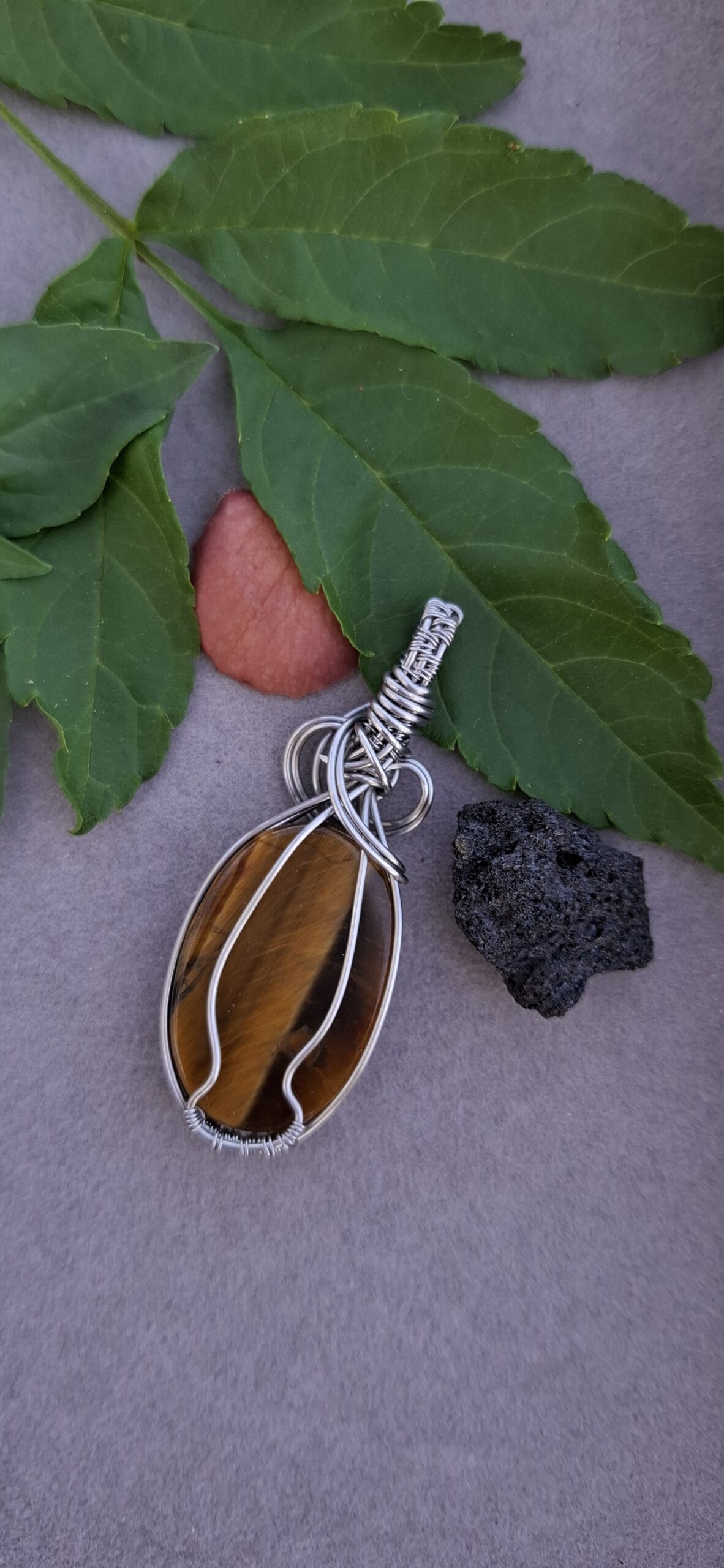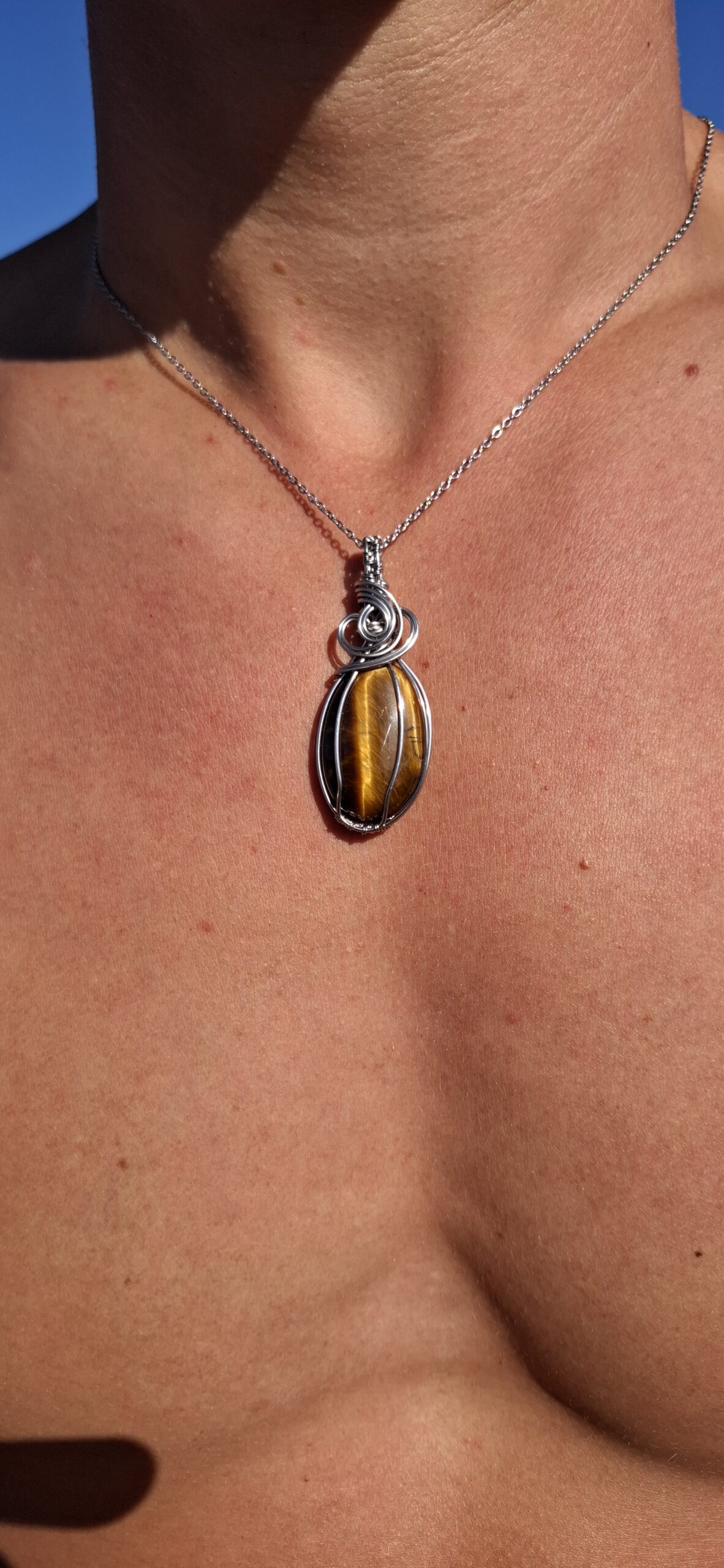 Ojo de tigre engarzado en acero inoxidable.